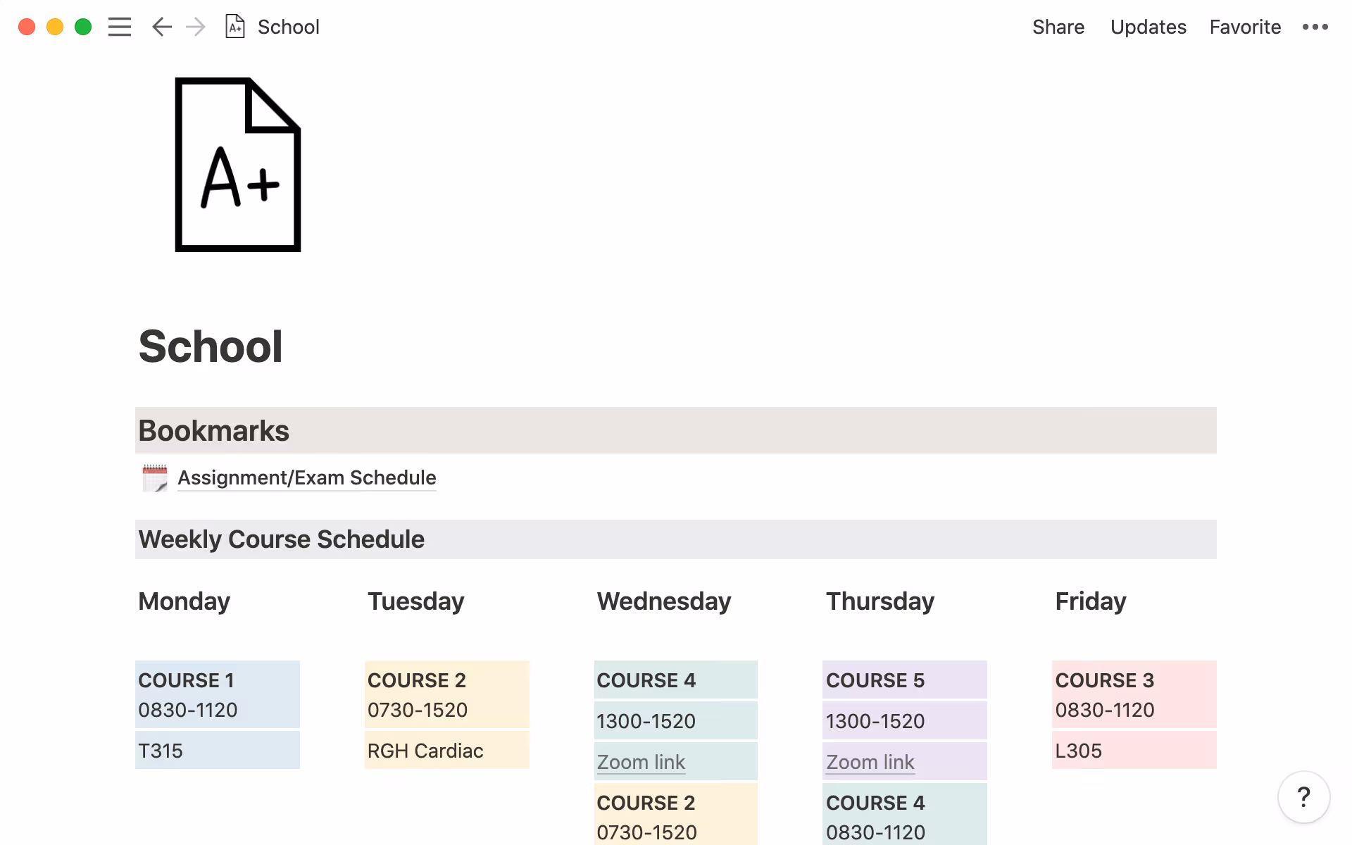 If you're a busy college student looking for a one-and-done dashboard, this is it. All parts of your life live side-by-side — but each has its own designated section you can customize. Assignments live in a database so you’ll never miss a deadline. Track your personal budget and expenses. Keep your roommates accountable with the shared roommate space. No excuses!